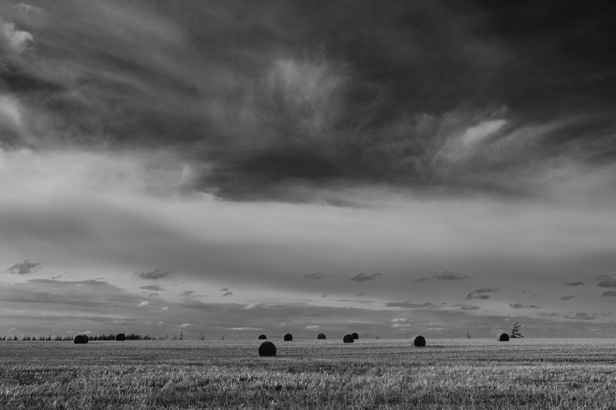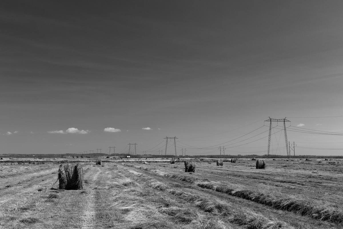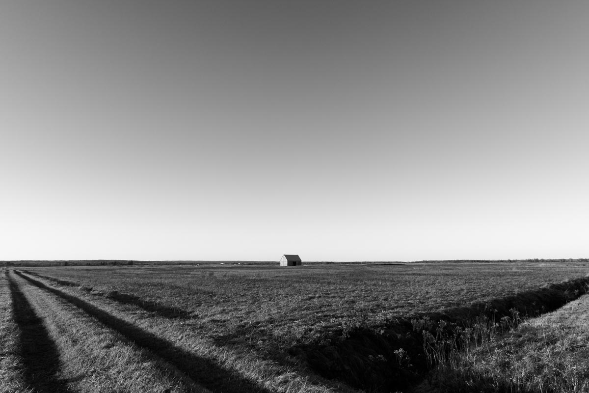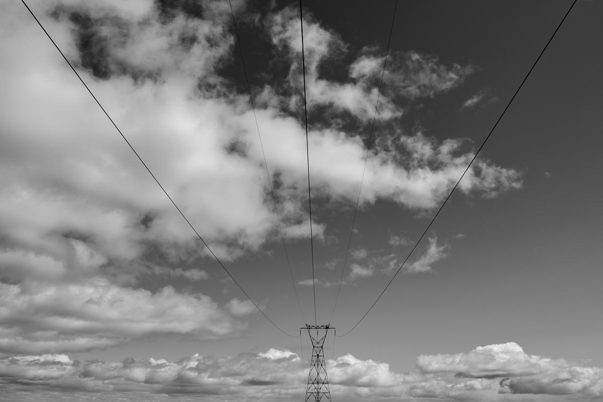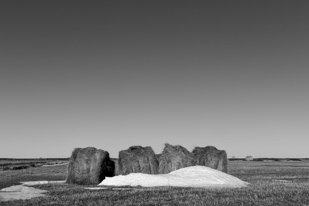 Major electrical transmission lines also cut through the Tantramar Marsh, and the large steel towers and high-voltage lines loom over the fields. At first I was annoyed by their presence, and would often try to frame images to exclude the towers and make it as easy as possible to remove the transmission lines in Photoshop. Over the years, though, I came to recognize them as an integral part of the landscape and now willingly incorporate them into the images, either as a compositional element or as the main subject. If they are ever-present to the eye, they can be ever-present in the photograph.